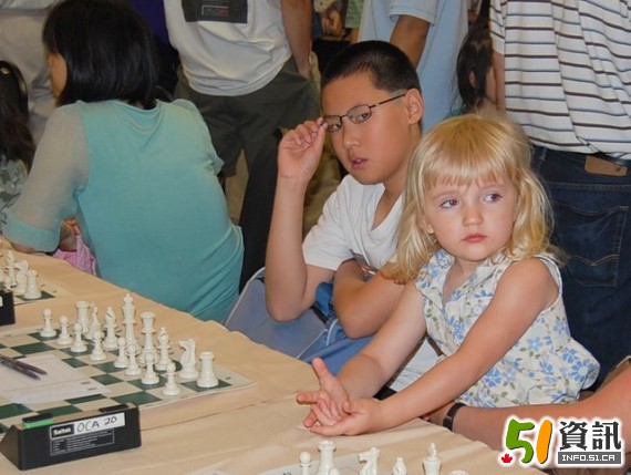 在比賽現(xiàn)場,記者見到了去年獲世界少年國際象棋錦標(biāo)賽(World Youth Chess Championships)10歲以下組冠軍并當(dāng)選為2010加拿大年度棋手的曹健嘉,曹健嘉對這次的比賽充滿信心。曹健嘉說,他是在學(xué)校里和老師開始學(xué)下棋的,沒想到一接觸就愛迷上了下棋,很快學(xué)校里就沒有他的對手了,現(xiàn)在他在互聯(lián)網(wǎng)上尋找棋友切磋棋藝。