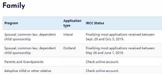 情況一(配偶擔保,加拿大境內申請):2019年9月29日至10月5日之間收到的大部分申請正在進行最終的審批手續(xù)。