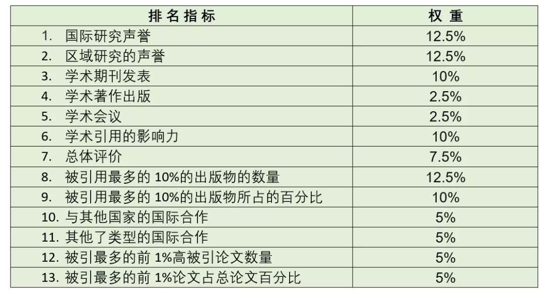 這項排名基于以下13項指標,衡量了各大學的學術研究表現(xiàn)以及它們的全球和地區(qū)的聲譽,所以該排名可以作為廣大留學生選擇學校和專業(yè)的參考。