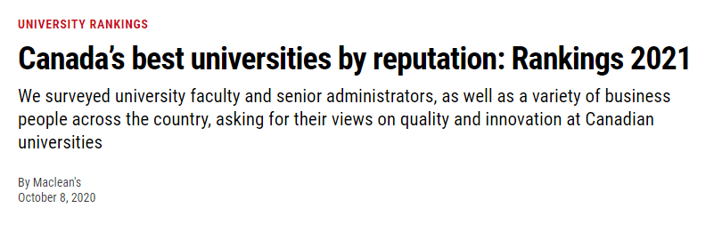 Maclean's《麥考林雜志》是加拿大最權威的大學排名榜單發(fā)布機構,很多加拿大的留學申請者都會把它作為擇校時的重要依據。