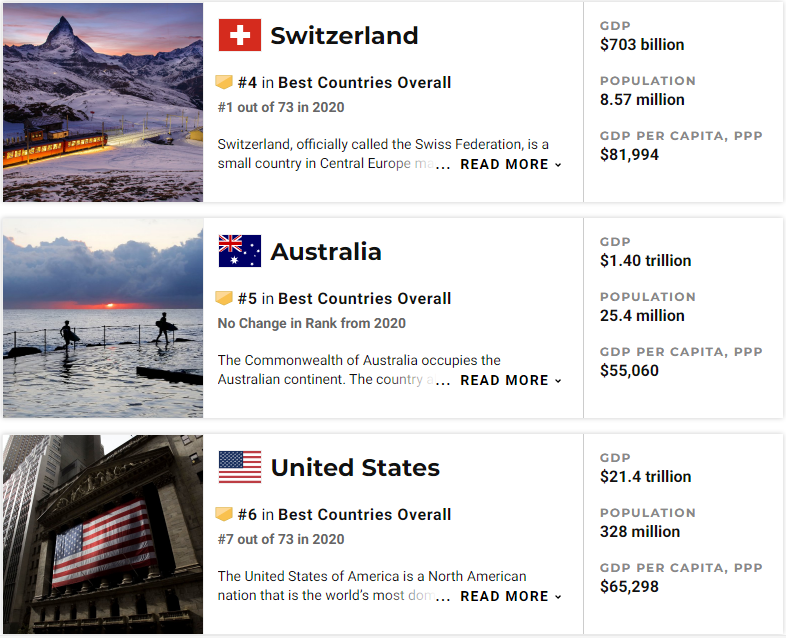 《US NEWS & WORLD REPORT》,美國綜合性報道和評論的英文周刊,比肩《時代》周刊和《新聞周刊》的第三大新聞雜志。每年US NEWS都是持續(xù)關注全球各個方面的發(fā)展數(shù)據(jù)并且推出極具權威的對應排名。最佳國家評選早于2016年便已開始。而加拿大經(jīng)歷了近6年的不懈努力,終于于今年,打敗了眾多國家拔得頭籌,奪得桂冠!