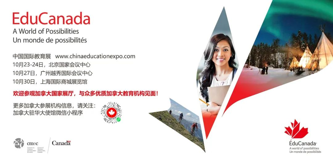 2021年10月23-30日,加拿大將有超過40家的各類教育機(jī)構(gòu)和留學(xué)相關(guān)服務(wù)機(jī)構(gòu)參加中國國際教育展三個(gè)城市的巡回展覽。中國國際教育展是教育部批準(zhǔn),中國教育國際交流協(xié)會(huì)主辦的國內(nèi)最大規(guī)模留學(xué)展會(huì)之一。 加拿大駐華使領(lǐng)館將設(shè)立加拿大國家展廳,充分利用疫情后重新回歸線下的教育展展示加拿大教育的諸多優(yōu)勢。