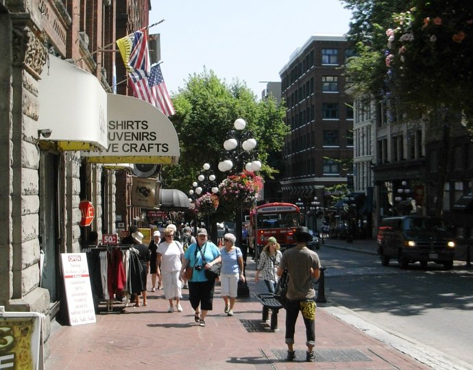 圖2:溫哥華狹窄的人行便道。注意圖中行駛的車輛離馬路牙子有多近。