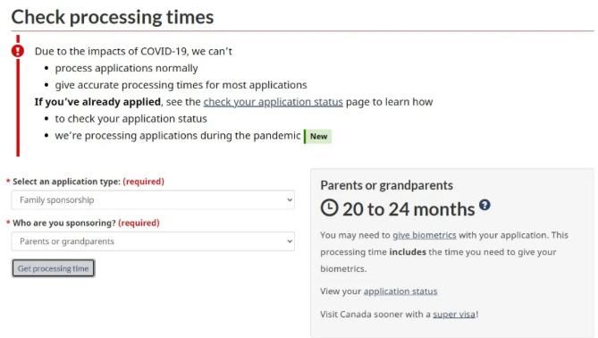 而父母/祖父母移民的申請時間則為20至24個月。