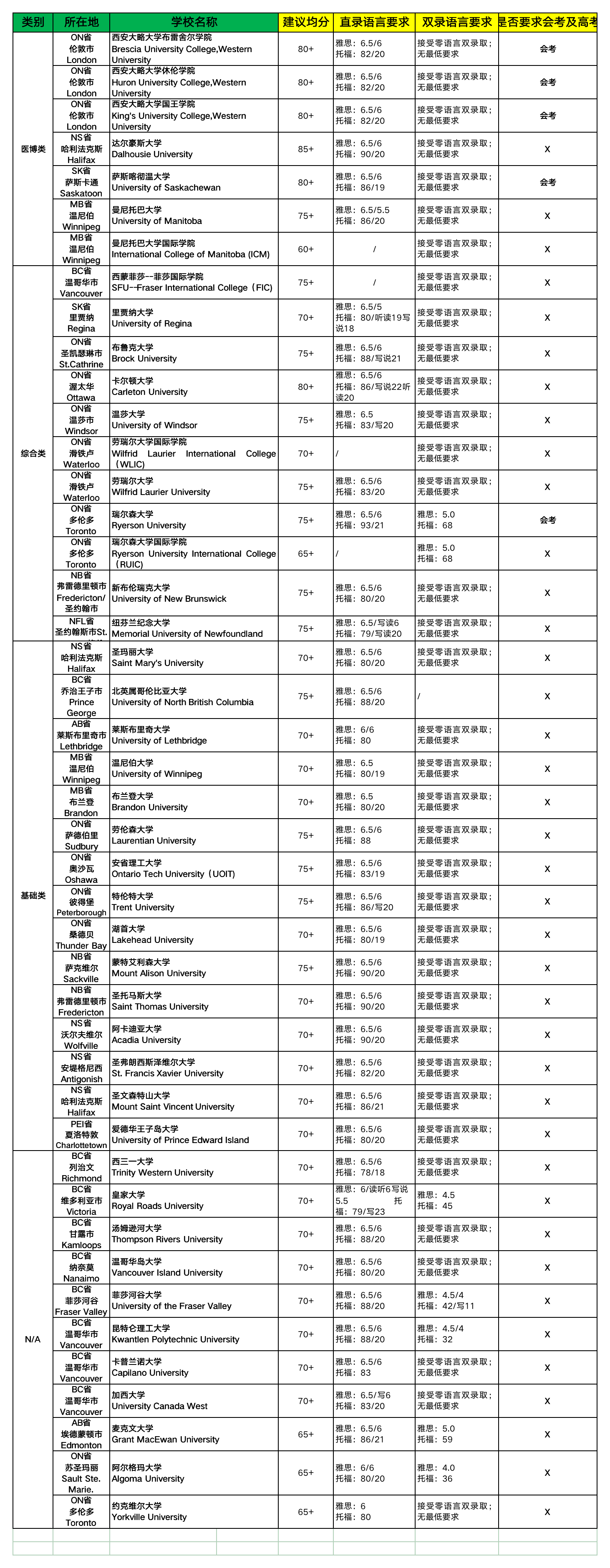 推薦專業(yè):商科、工程、精算、農(nóng)業(yè)、生命科學(xué)等 具體錄取要求可參考:https://umanitoba.ca/admissions/undergraduate-admissions |