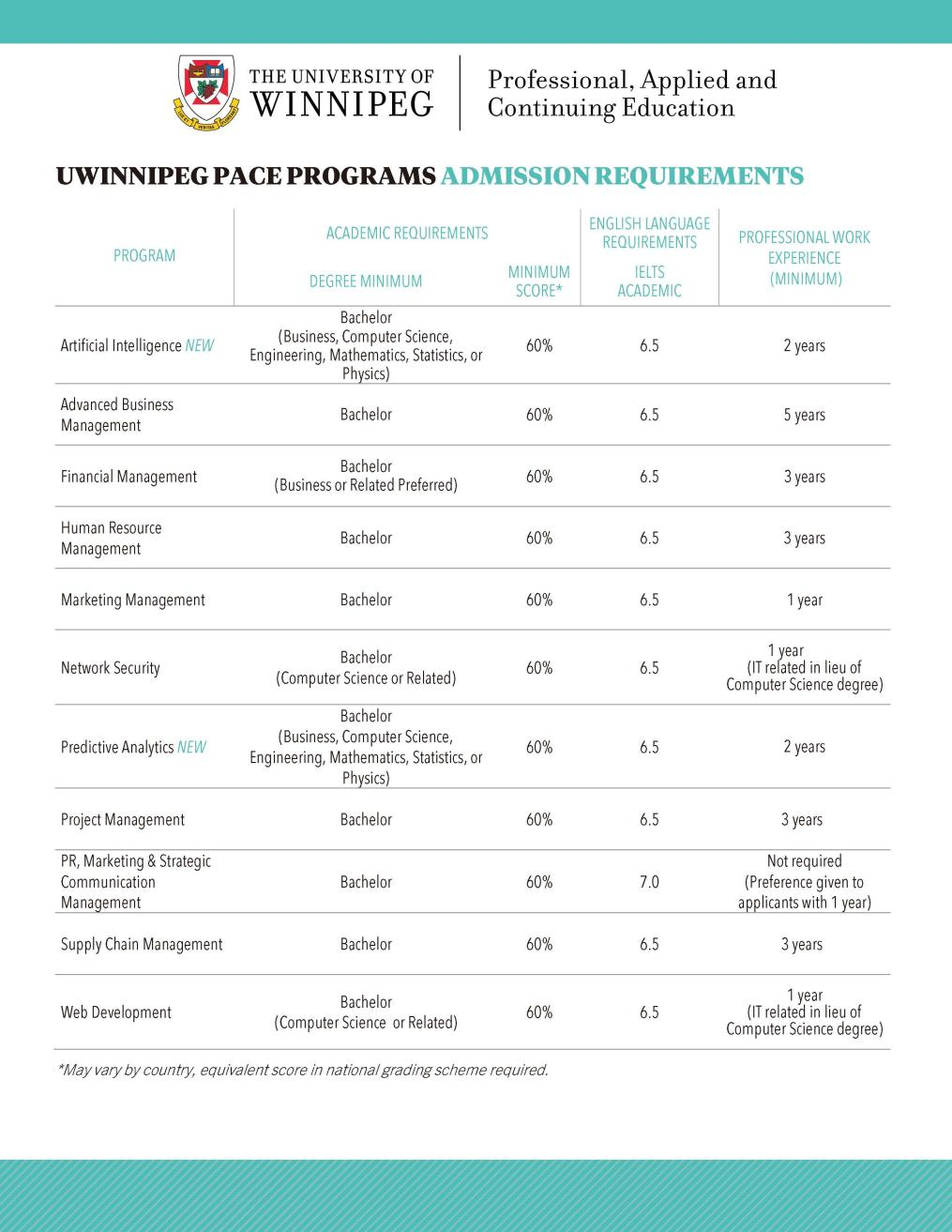 PACE專業(yè)錄取要求: