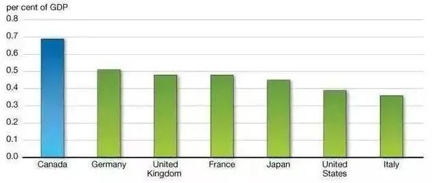 教育產(chǎn)業(yè)一直是加拿大政府一項(xiàng)重大的投入,加拿大政府在教育的投資上遠(yuǎn)超過其他國家。加拿大每年教育經(jīng)費(fèi)高達(dá)國內(nèi)生產(chǎn)總值 (GDP)的 7.1%,而英國占比5.1%、美國占比約為4%左右。