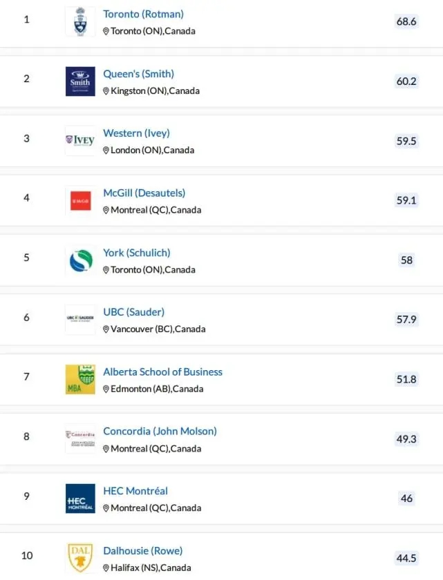 2022加拿大MBA院校排名