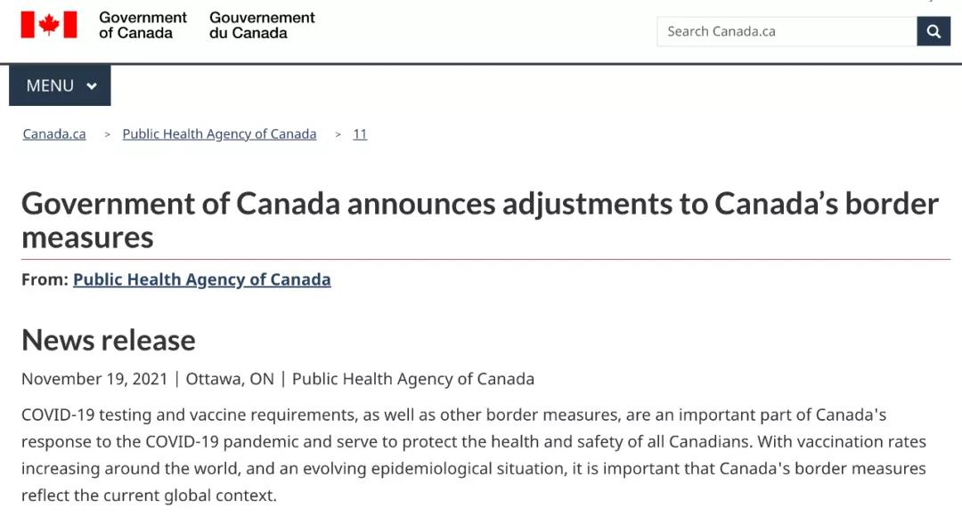 此前,加拿大政府發(fā)出官方消息稱從11月30日起,所有需要在加拿大境內(nèi)搭乘飛機或火車的旅客,必須要完全接種加拿大認可的疫苗14天后,才會被允許登機或乘車。就在我們憂愁這項政策即將如何實施的時候,峰回路轉(zhuǎn)!柳暗花明!加拿大政府直接放了個終極大招,直接正式修改了目前的入境規(guī)定。
